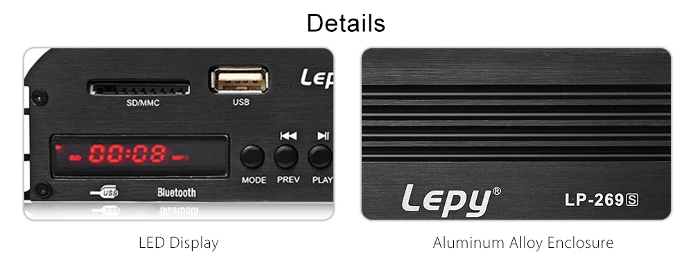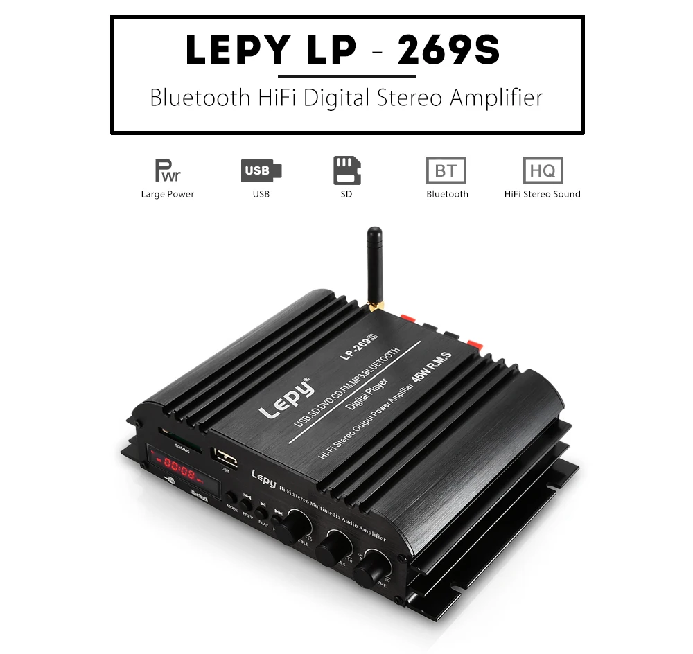 Lepy LP-269S Bluetooth Amplifier HiFi Stereo 2channel Digital Audio Speaker FM Radio Support SD Card Remote Control PriorityMail
